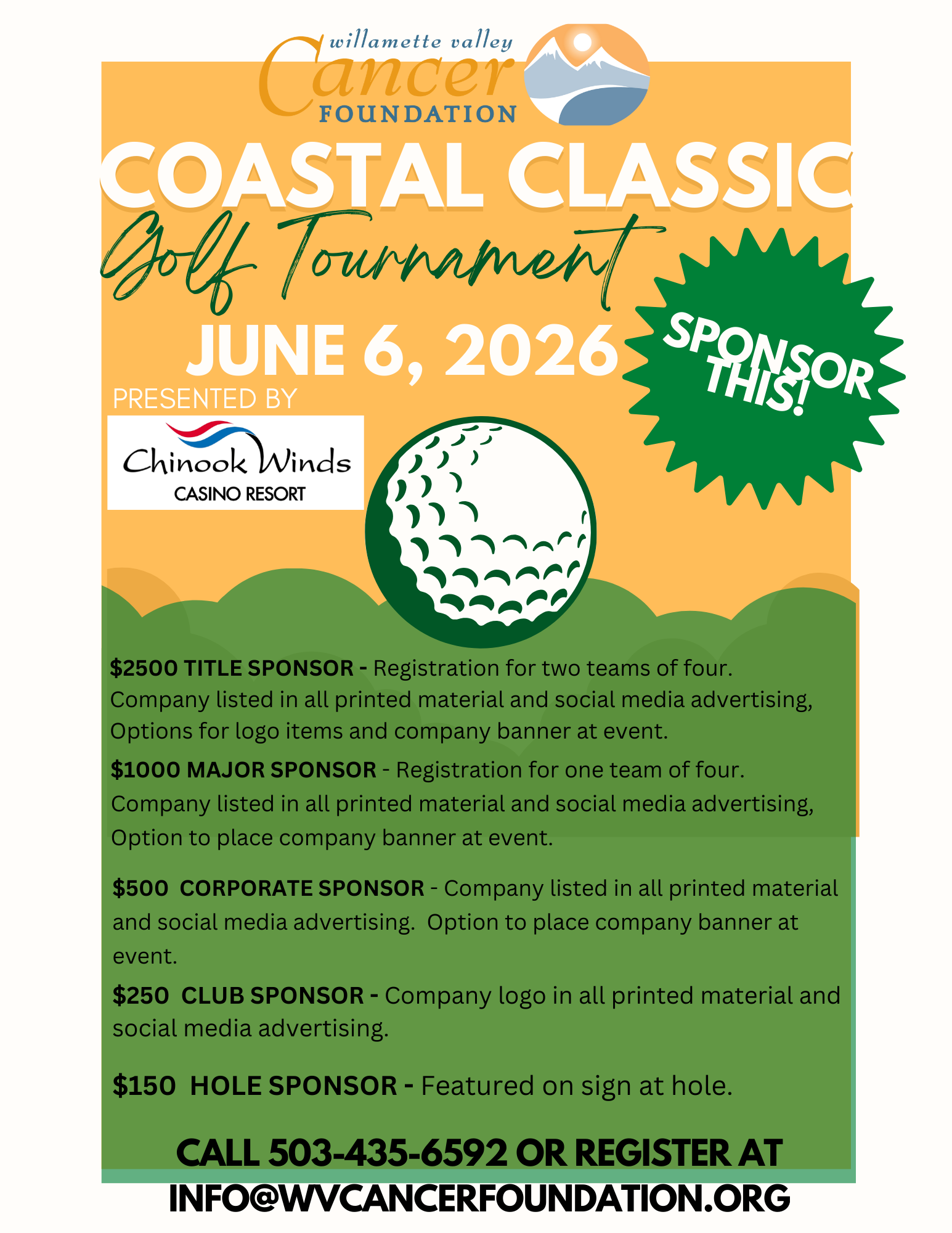 Contact Willamette Valley Cancer Foundation office at 503-435-6592 or [email protected] for more information on sponsoring our event. We can customize a package for you.